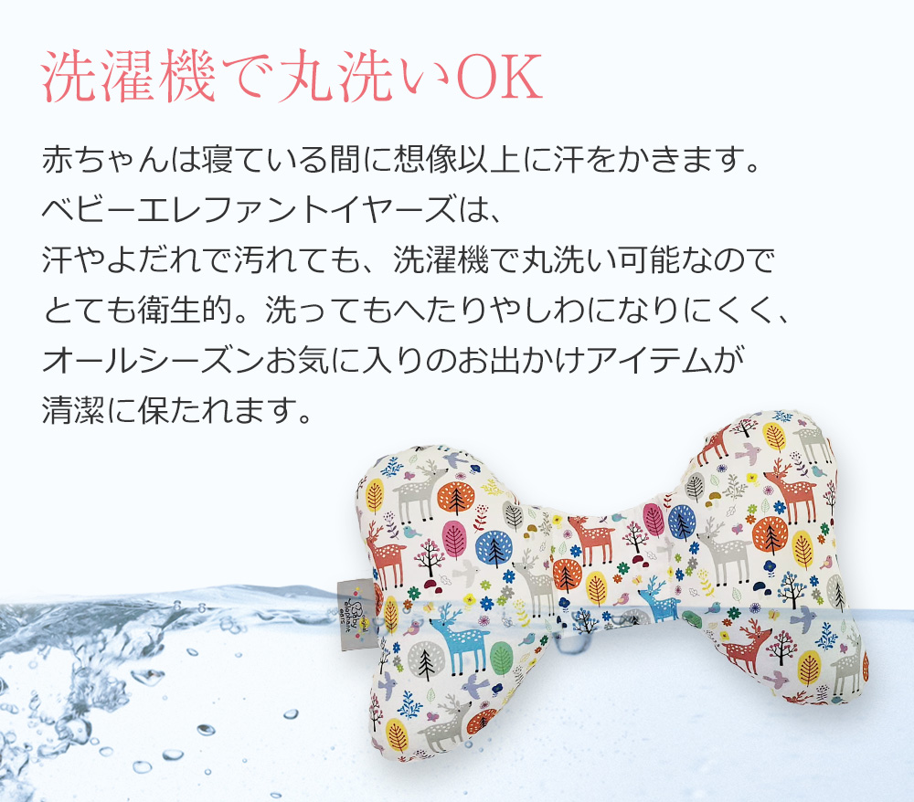 ベビーエレファントイヤーズは、やさしく首を支えながら、家族の大切な時間に寄り添います。